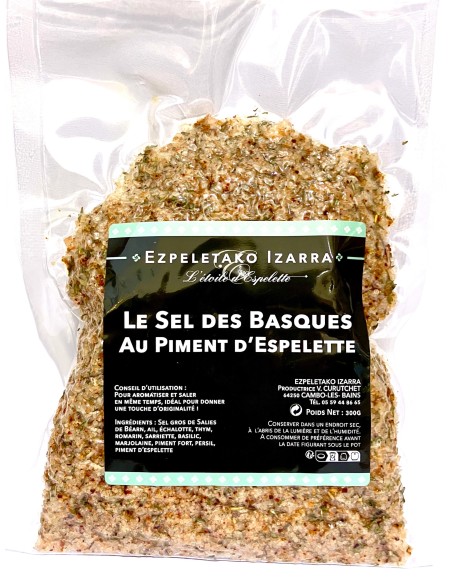 Ingrédients: Sel gros de Salies du Béarn, ail, échalote, thym, romarin, sarriette, basilic, marjolaine, piment fort, persil, piment d'Espelette.