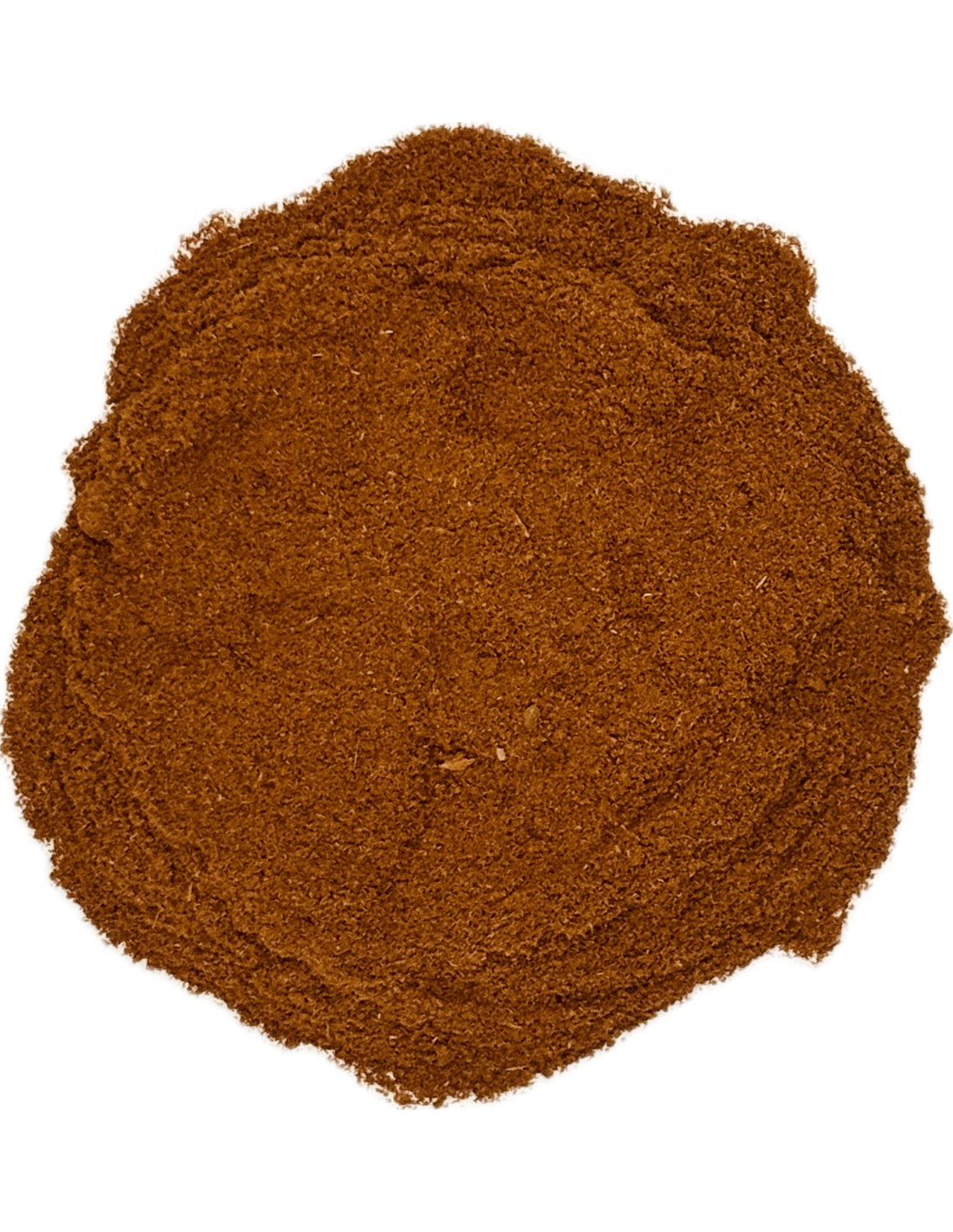 Piment fort, paprika, cumin, origan, girofle, ail.