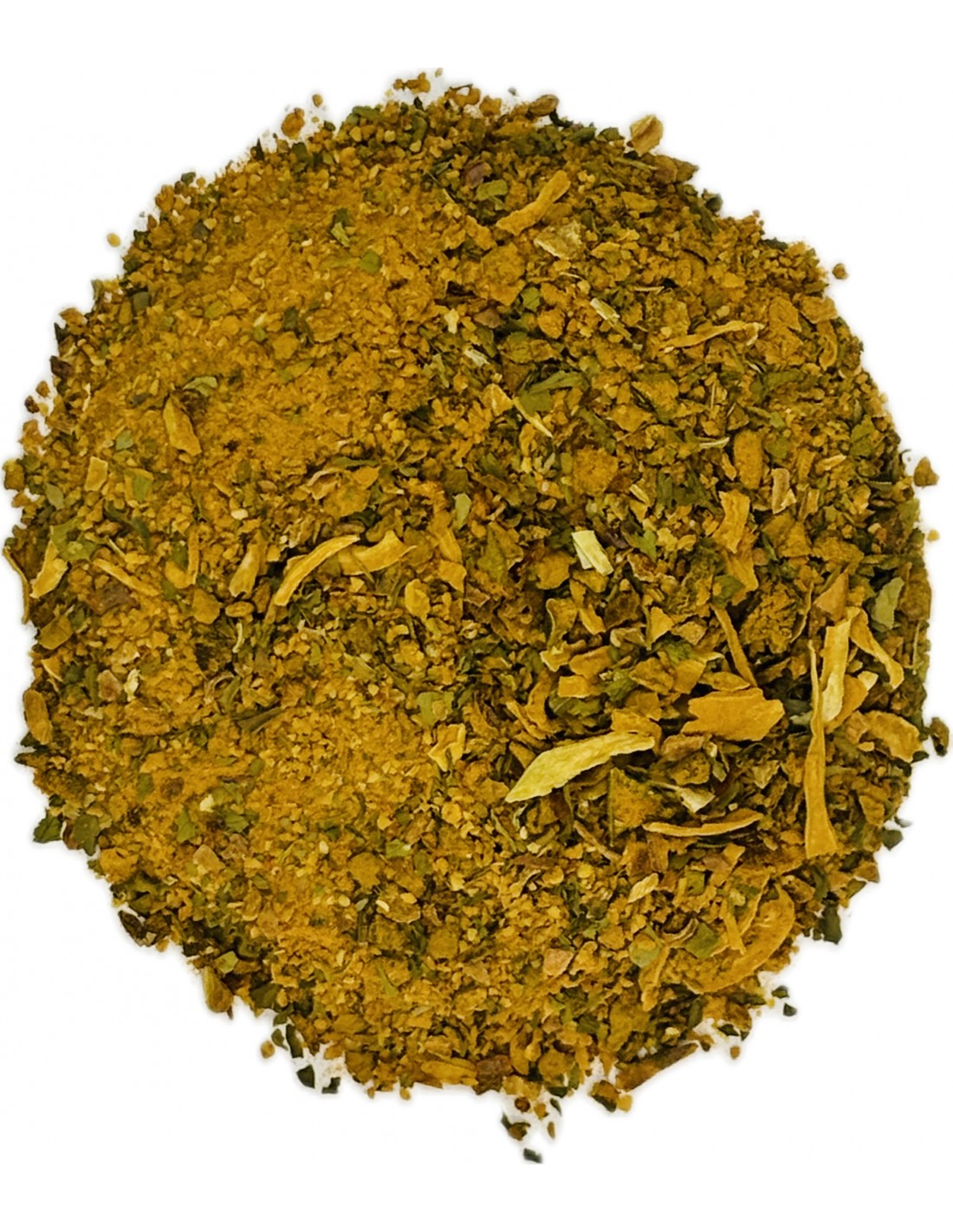PATCHAMAMA Mélange Mille et une nuits 5,90 € Colombo, Fleur de rose, girofle, estragon, cumin, poivre, cannelle, fenugrec, badiane, gingembre, coriandre, oignon, sel fin, cardamome, muscade, laurier, céleri Originaire de la cuisine médiévale du Moyen-Orient, ce mélange est utilisé comme un curry floral dans toutes vos préparations culinaires du quotidien : viandes, poissons blancs, légumes, sauces... Ajouter au panier